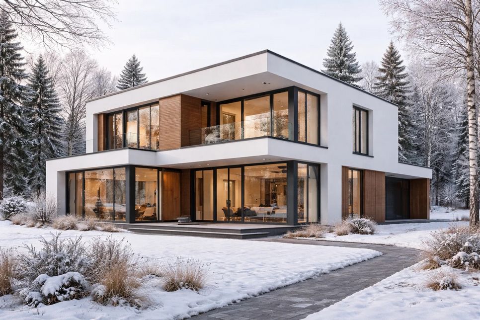 Баухаус исторически относится к модернизму, но в современном коттедже чаще уместнее говорить о неомодернизме - современной версии модернистских принципов с учетом технологий. Неомодернизм опирается на энергоэффективные окна, современные фасадные системы, продуманную вентиляцию и солнцезащиту, поэтому может быть заметно комфортнее в эксплуатации.