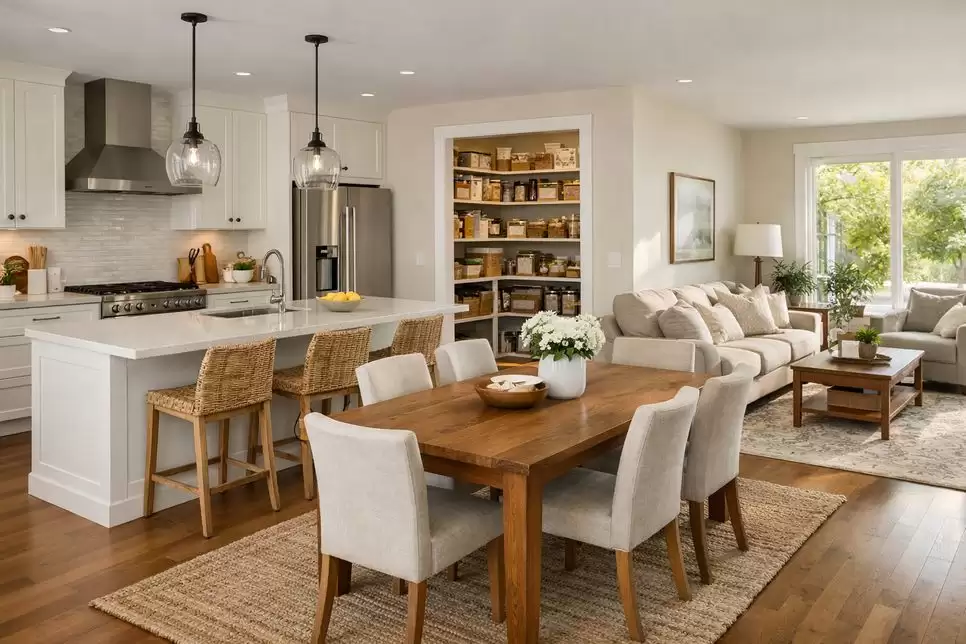 Частая ловушка: открытая планировка без хранения и акустики превращает гостиную в «проходную кухню». Если вам важна тишина, заранее предусмотрите буфер: зонирование, перегородку или отдельную «тихую» комнату.