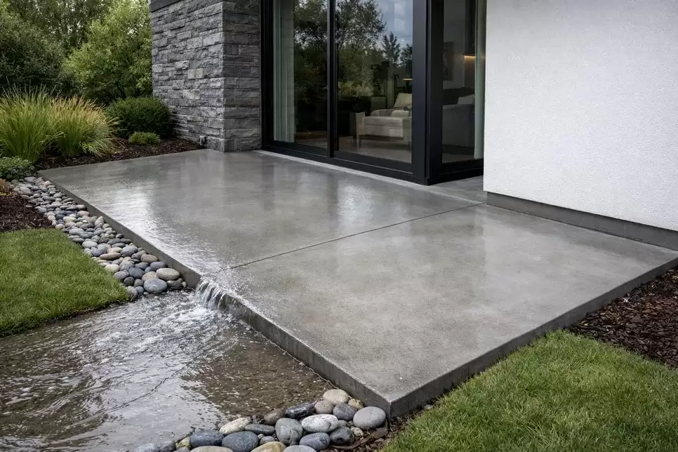 «Мостик воды» - это участок, где вода получает легкий путь внутрь: щель вдоль стены, ступенька у цоколя, неплотный стык покрытия. Отмостка может быть красивой, но если «мостик воды» есть, вода найдет его первой.