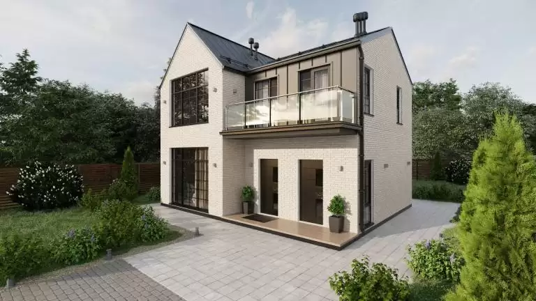 Если планируете построить двухэтажный загородный дом, обратите внимание на проекты с балконом. Балкон на втором этаже — это отличное место, чтобы вечером понаблюдать за звездами на небе, попить чаю наслаждаясь тишиной и свежим воздухом.