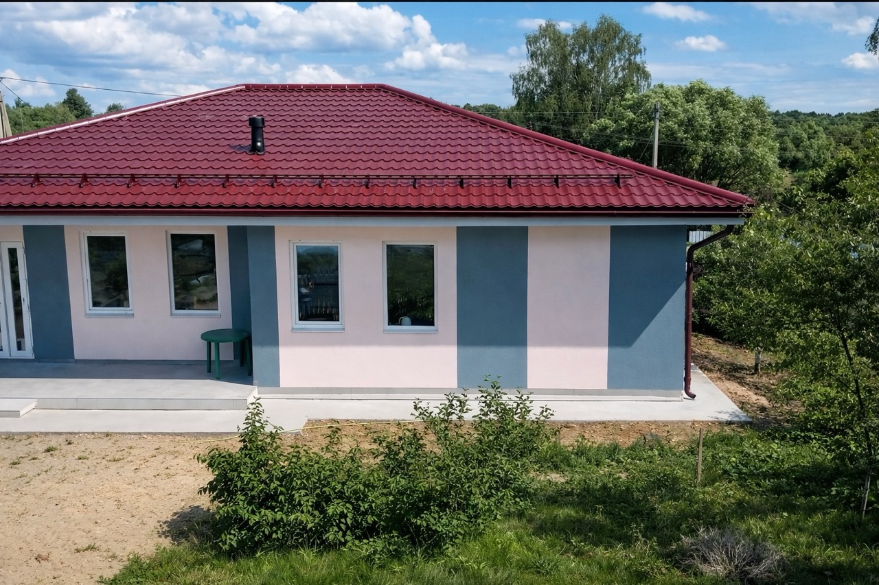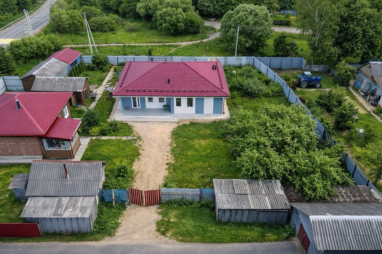 Дом построен по типовому проекту из железобетонных панелей и ориентирован на быстрый выход в тёплый контур. Ключевые преимущества — высокий темп строительства (до тёплого контура за 50 дней) и энергоэффективность, подтверждённая зимней эксплуатацией. Фасад не требует сложной отделки: достаточно шпаклёвки и покраски. Инженерные коммуникации аккуратно разводятся внутри перегородок, что упрощает последующую отделку и повышает аккуратность исполнения.