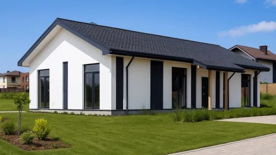 Домокомплект — это комплект несущих стеновых панелей БЭНПАН+ с предустановленным утеплителем 170 мм и готовой подсистемой из оцинкованного профиля толщиной 1,2мм для монтажа вентилируемого фасада. Высота потолков 2,72 м