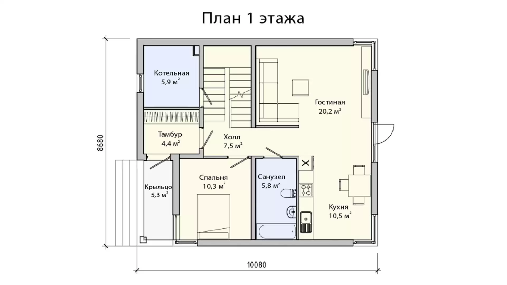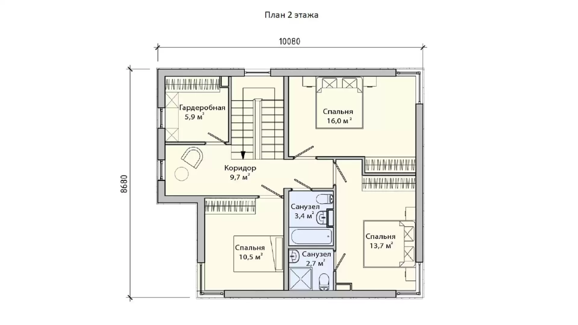 Домокомплект — это комплект несущих стеновых панелей БЭНПАН+ с предустановленным утеплителем 170 мм и готовой подсистемой из оцинкованного профиля толщиной 1,2мм для монтажа вентилируемого фасада. Высота потолков 2,72 м
